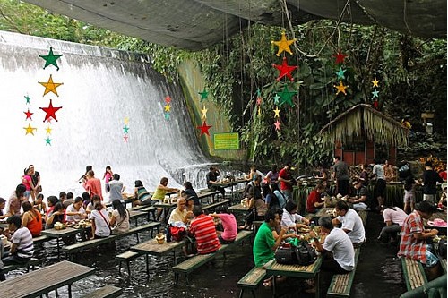 这老板生意太会做了,将餐厅开设在瀑布的脚下。此餐厅位于菲律宾奎松省VillaEscudero,除了餐厅还有客房提供,都是当地特色的建筑,而这个瀑布餐厅绝对是一大特色。 (责任编辑:admin)
